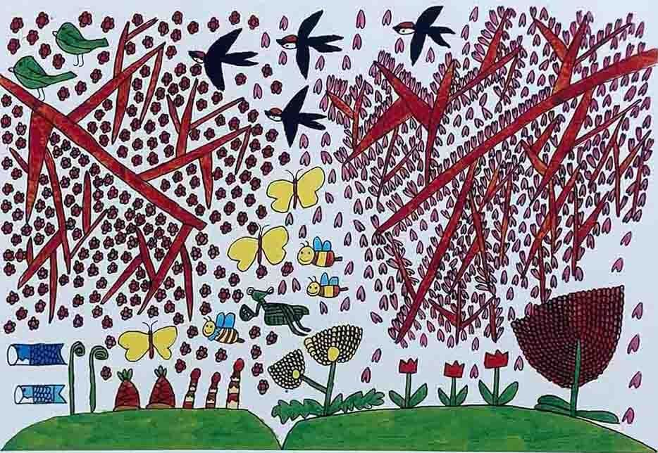 渡部龍典(わたべたつのり) 春といえば 版画 作品 lemmikki(レンミッキ) TATSUNORI WATABE